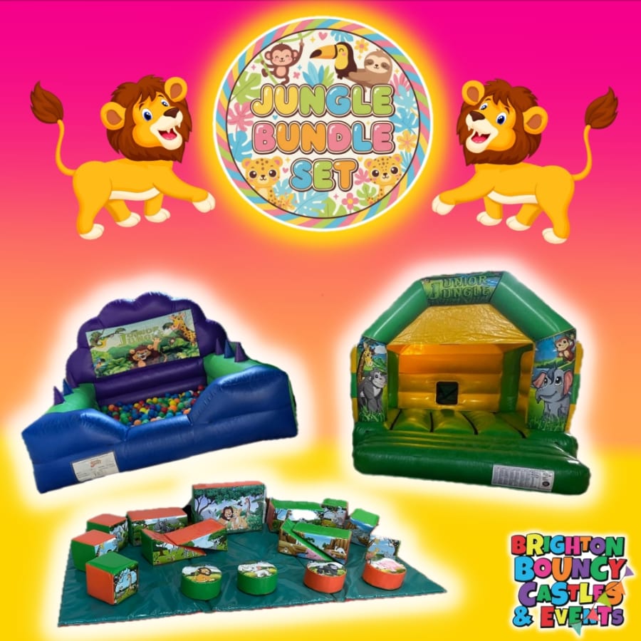 included in this superb package are our Jungle Combi bouncy castle, Jungle soft play, and Jungle ball pool and safety matting to keep your child safe and happy!!!!