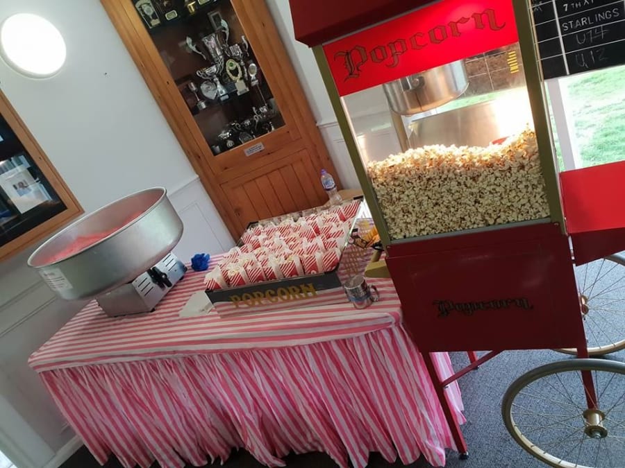 Why not hire our manned popcorn and candy floss stall (with unlimited supply) for up to two hours? Ideal for any occasion including weddings, summer fêtes and Christmas parties. Every child loves candy floss and popcorn even adults. Make them happy while raising money for your group or charity.