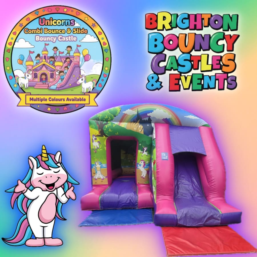 Reserve the Unicorns Combi Bounce & Slide Bouncy Castle today. Limited dates available — this is a show stopper and books fast. For fast service and reliable fun search for brighton bouncy castle hire or contact us now to secure your date. π