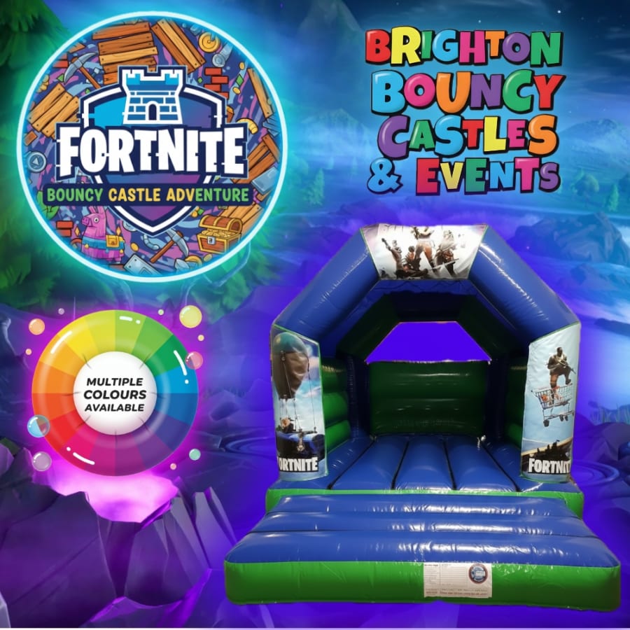 fornite bouncy castle hire Fortnite Themed Bouncy Castle Multiple Colours Available in brighton and hove and east sussex