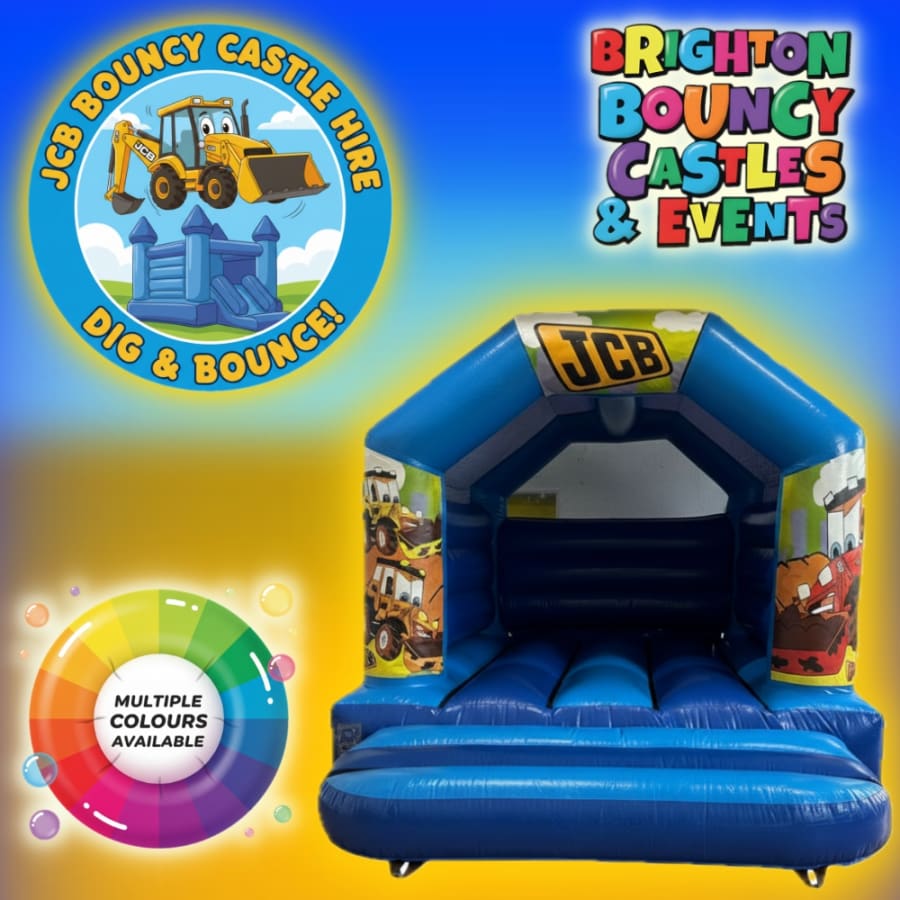 Hire our eye-catching Jcb Digger Themed Bouncy Castle for unforgettable kids' parties. Bright digital artwork and bold colours create instant excitement. Suitable for boys and girls. Perfect for birthdays, family events, school fetes, and community fun. Book early to secure the date. bouncy castle hire sussex Jcb Digger Themed Bouncy Castle Multiple Colours Available in brighton hove sussex