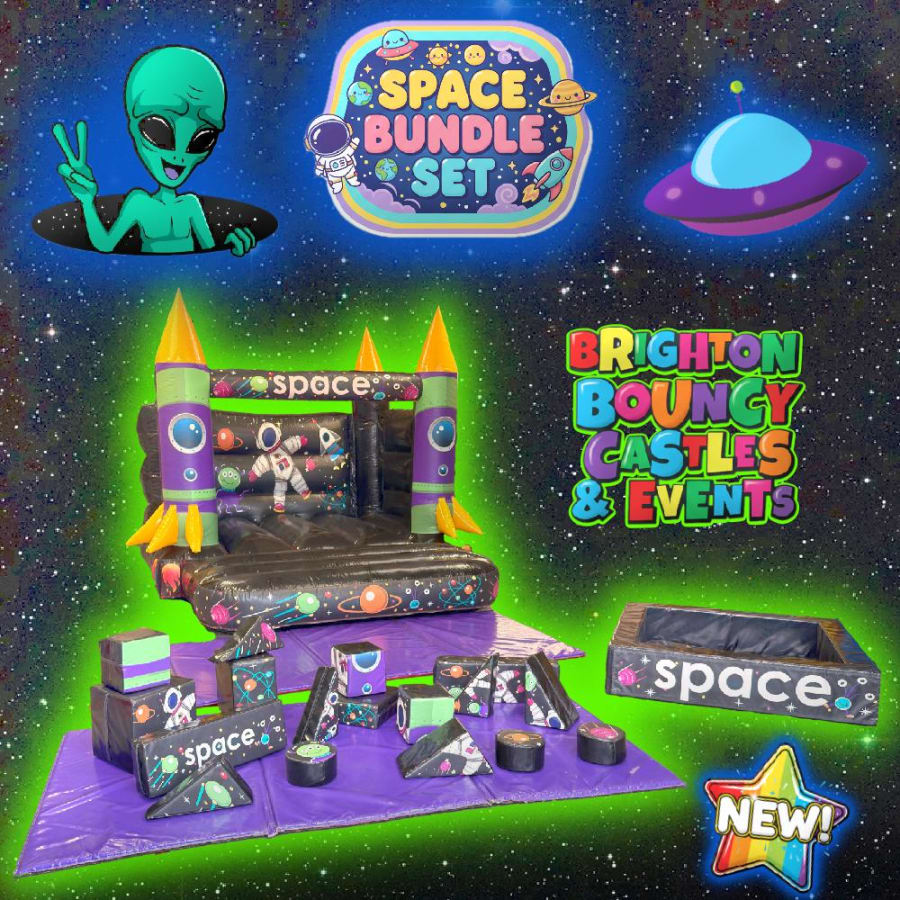 Reserve early to secure your date. For fast quotes and availability, contact our team for bouncy castle hire Shoreham and full softplay hire across Sussex. Make your event memorable with the Space Bundle Set Softplay Castle Ball Pool.