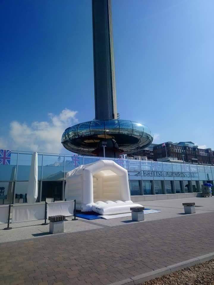 white wedding castle brighton White Wedding Bouncy Castle in broghton sussex is the perfect blend of style and fun for your special day. Glossy white, spacious and elegant, this bouncy castle welcomes adults and children. It creates photo-ready moments and keeps guests entertained from ceremony to evening reception. 👰🤵