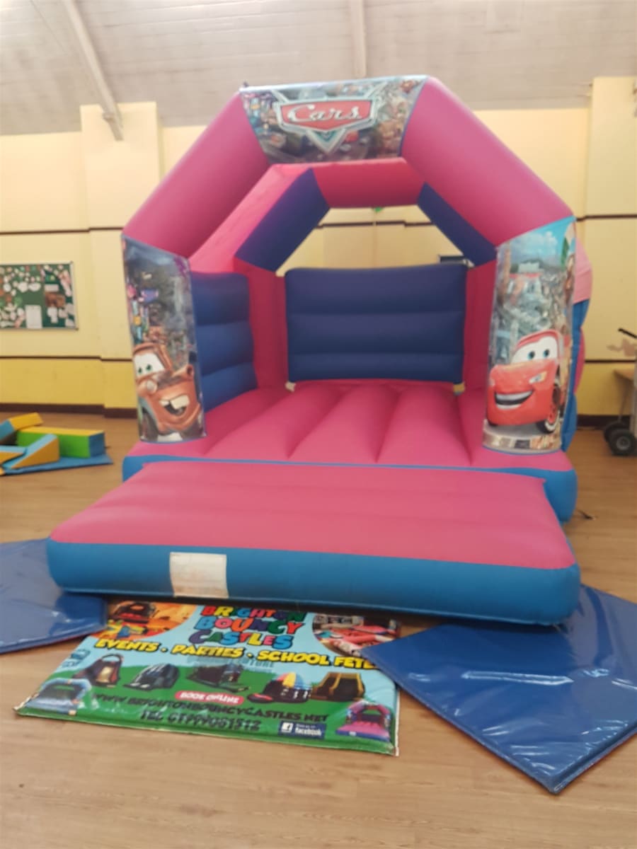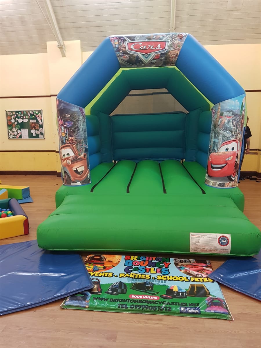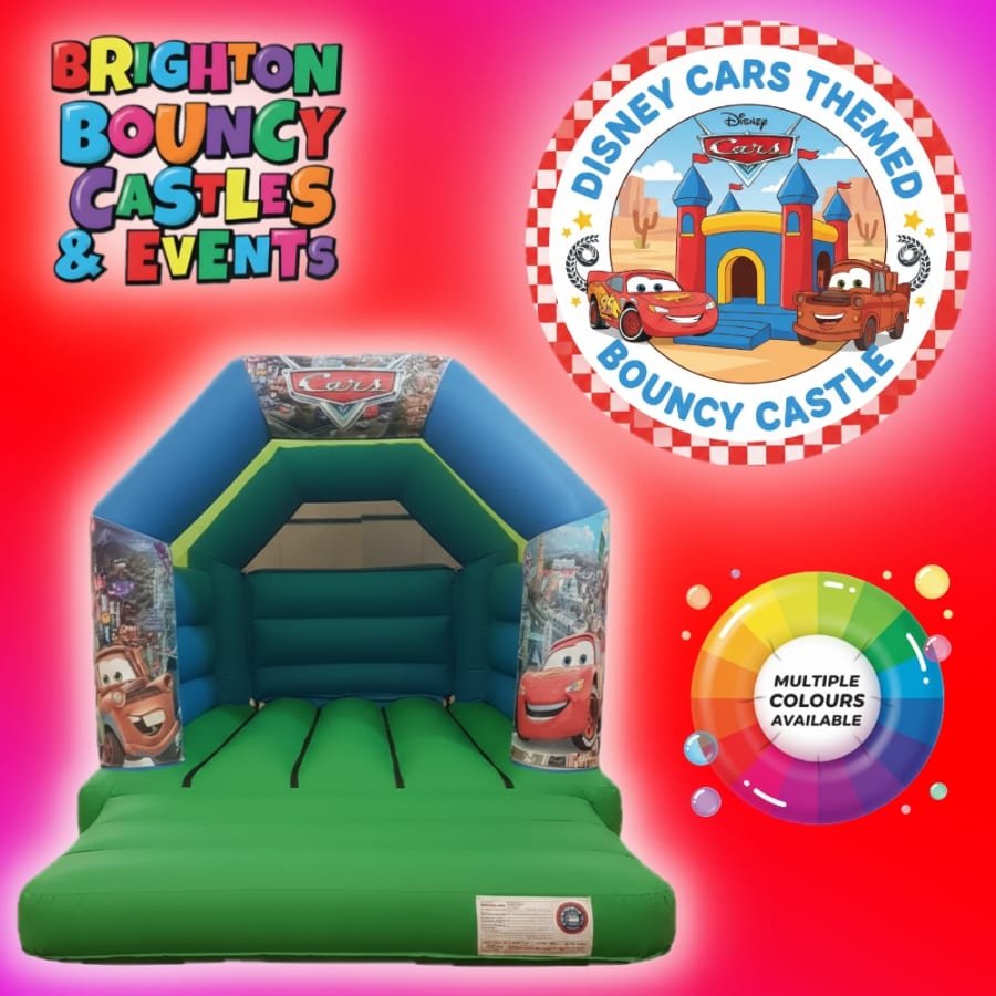 Hire our vibrant Disney Cars Themed Bouncy Castle for unforgettable kids' parties. disney cars bouncy castle hire Disney Cars Themed Bouncy Castle Multiple Colours Available in brighton hove sussex. Bright digital artwork and Velcro-attachable panels let you customise colours. Perfect for birthdays, school fairs and family events. Kids love the theme. Parents love the safety and convenience. ๐