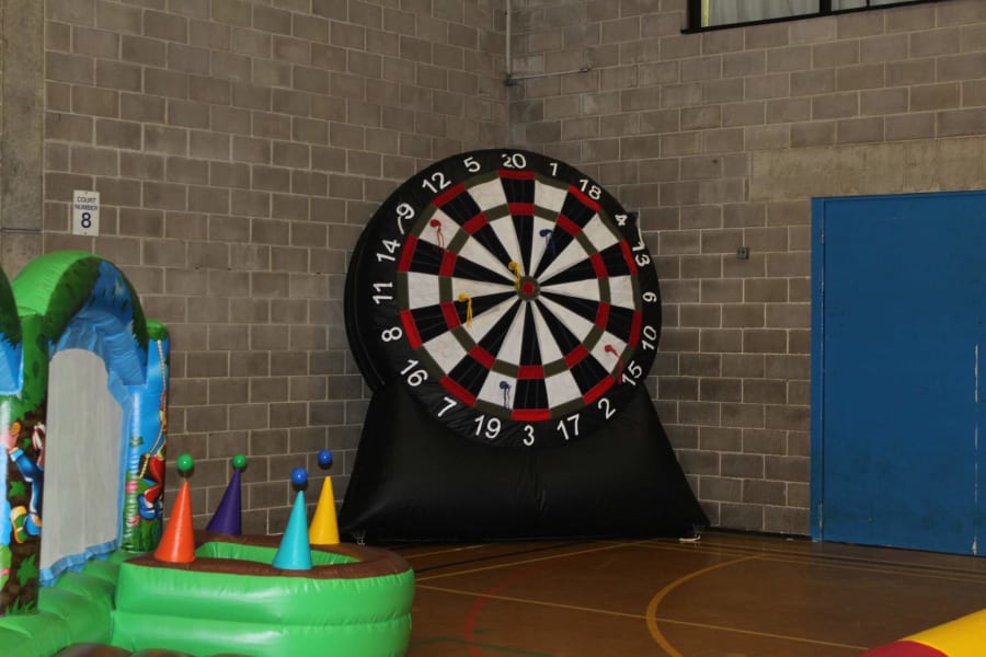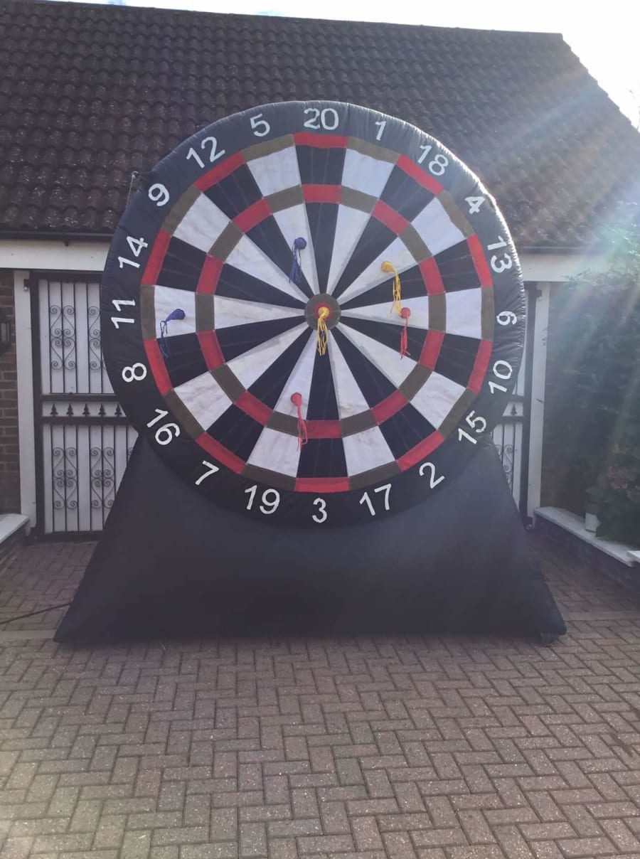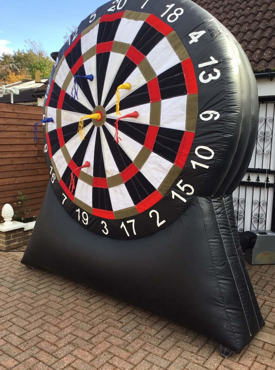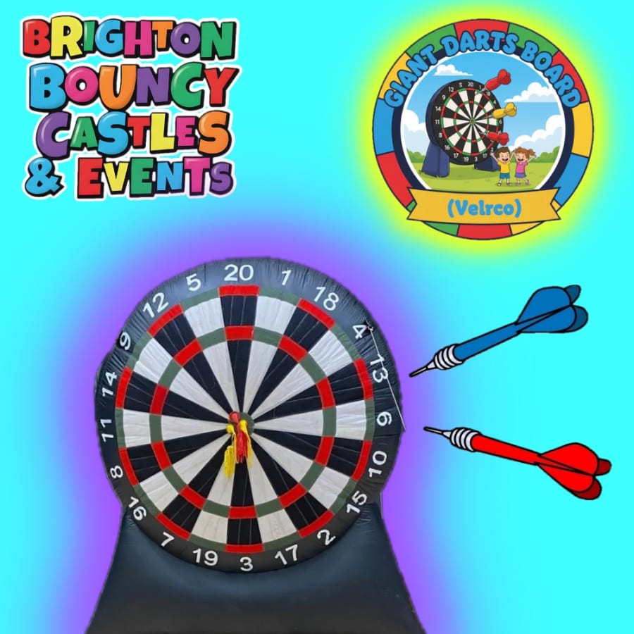 Book the giant infltable darts board hire Giant Darts Board (Velcro) in brighton hove sussex today. This eye-catching 8ft x 8ft Velcro dartboard delivers safe, competitive fun for children and adults. Darts stick to the board for instant scoring. Perfect for indoor or outdoor parties. Darts included. Fast setup. Big impact.