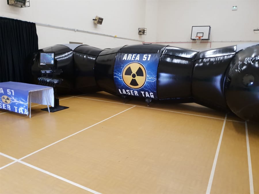 - Inflatable Area 51 maze arena with built-in smoke machines and disco lights 🎇