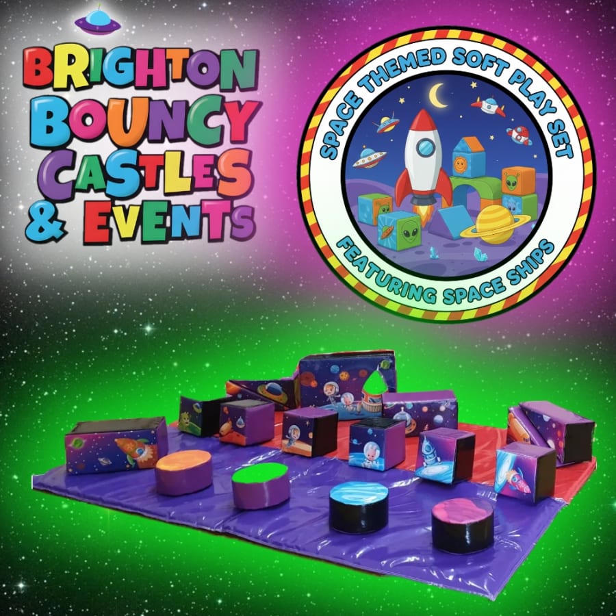 We deliver and set up across burgess hill brighton lindfield. Choose our softplay hire burgess hill service to bring this Space Themed Soft play Set Featuring Space Ships to your venue. Fast delivery. Professional setup. Clear pricing.
