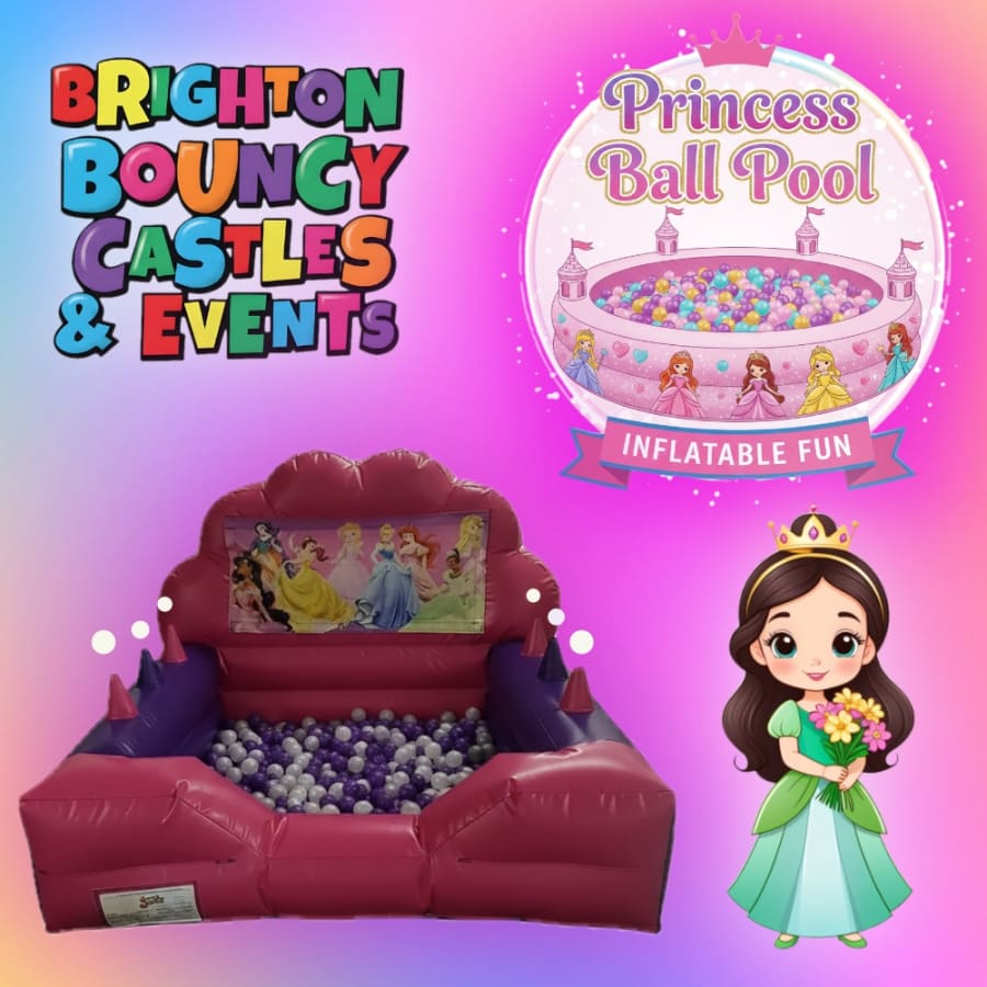 Looking for princess party hire Princess Ball Pool (inflatable) in lewes ringmer ucfield? Our INFLATABLE PRINCESS BALL POOL delivers bright colours, beloved Disney characters (Anna, Elsa, Snow White) and safe soft-play fun. Manufactured by Implay, the world-leading soft play maker, it guarantees durability and child-safe design. Perfect for birthdays, events and themed parties. 🧸