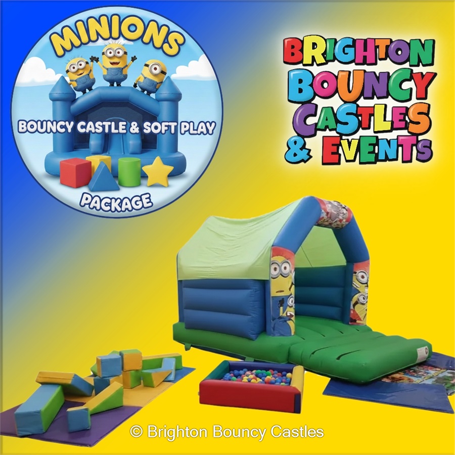 included in this superb package are our Minions bouncy castle, Generic soft play, and Generic ball pool and safety matting to keep your child safe and happy!!!!