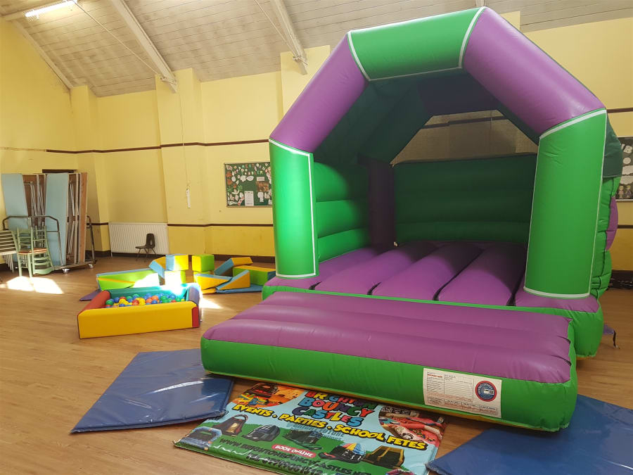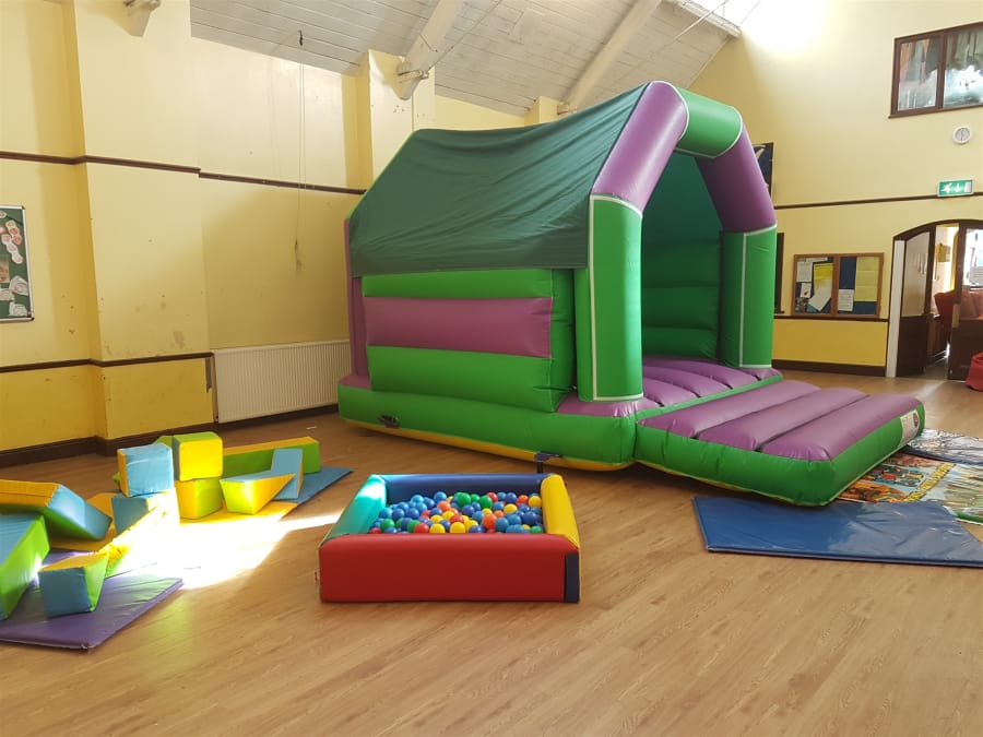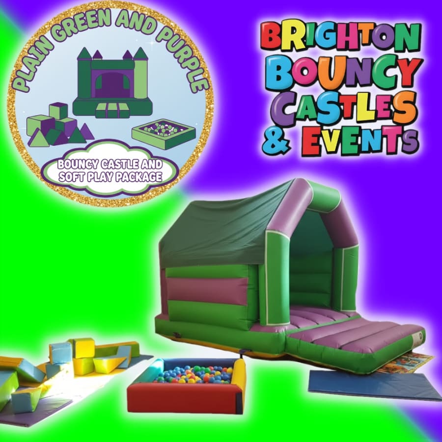 Plain Green And Purple Bouncy Castle and Soft Play Package
