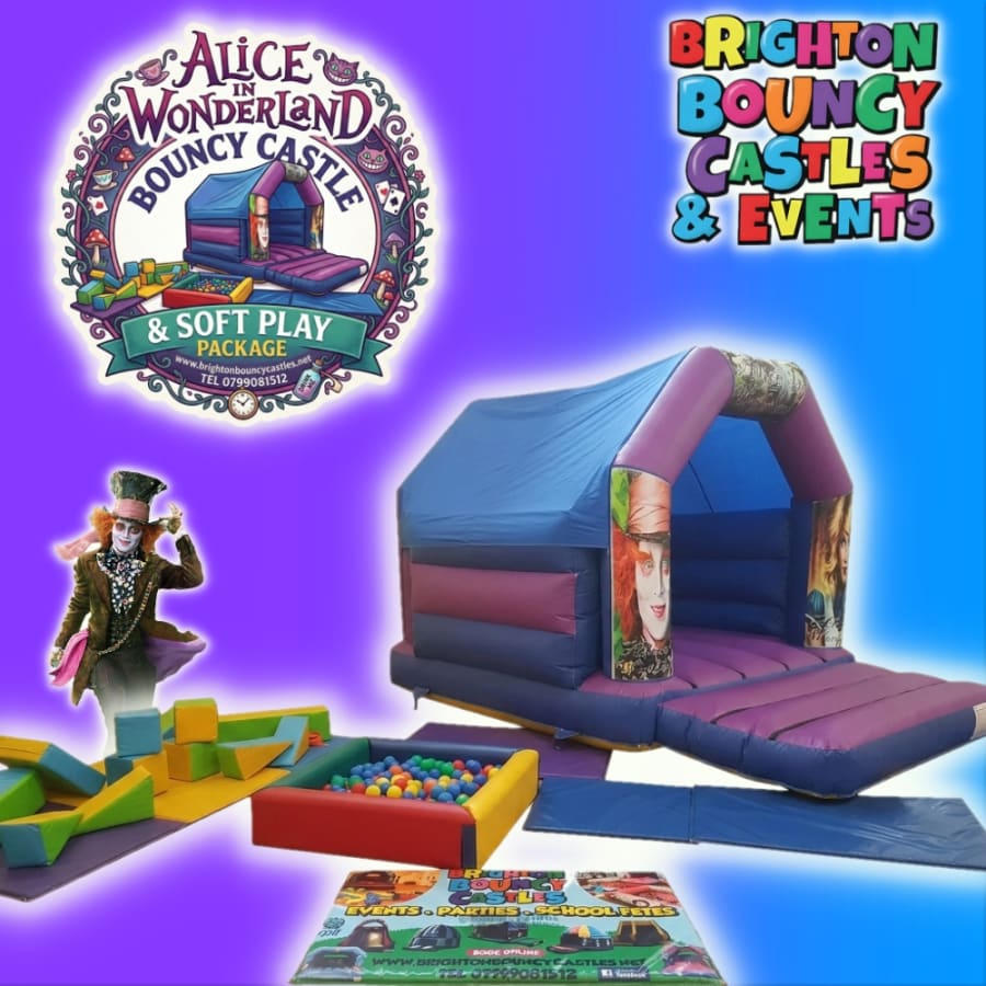included in this superb package are our Alice In Wonderland bouncy castle, Generic soft play, and Generic ball pool and safety matting to keep your child safe and happy!!!!