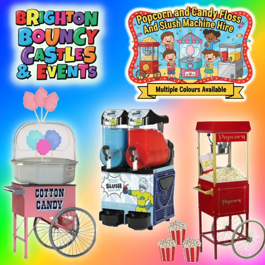 Why not hire our manned popcorn and candy floss and Slush stall (with unlimited supply Candy floss and popcorn Slush ) for up to two hours? Ideal for any occasion including weddings, summer fêtes and Christmas parties. Every child loves candy floss and popcorn even adults. Make them happy while raising money for your group or charity.